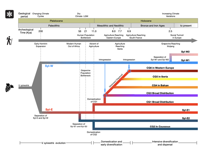 栽培葡萄起源、驯化、扩散全景图
