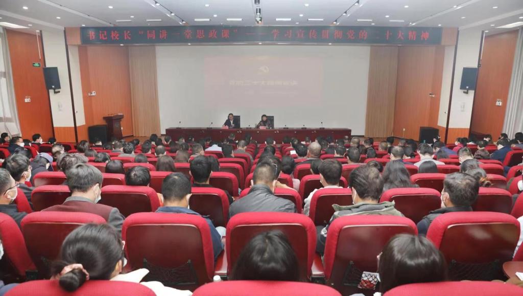 本站消息 2022年11月24日下午,学校书记校长“同讲一堂思政课”开讲,学校党委书记黎素梅为师生宣讲党的二十大精神。校长李永和主持,学校领导、处级干部、师生代表参加。