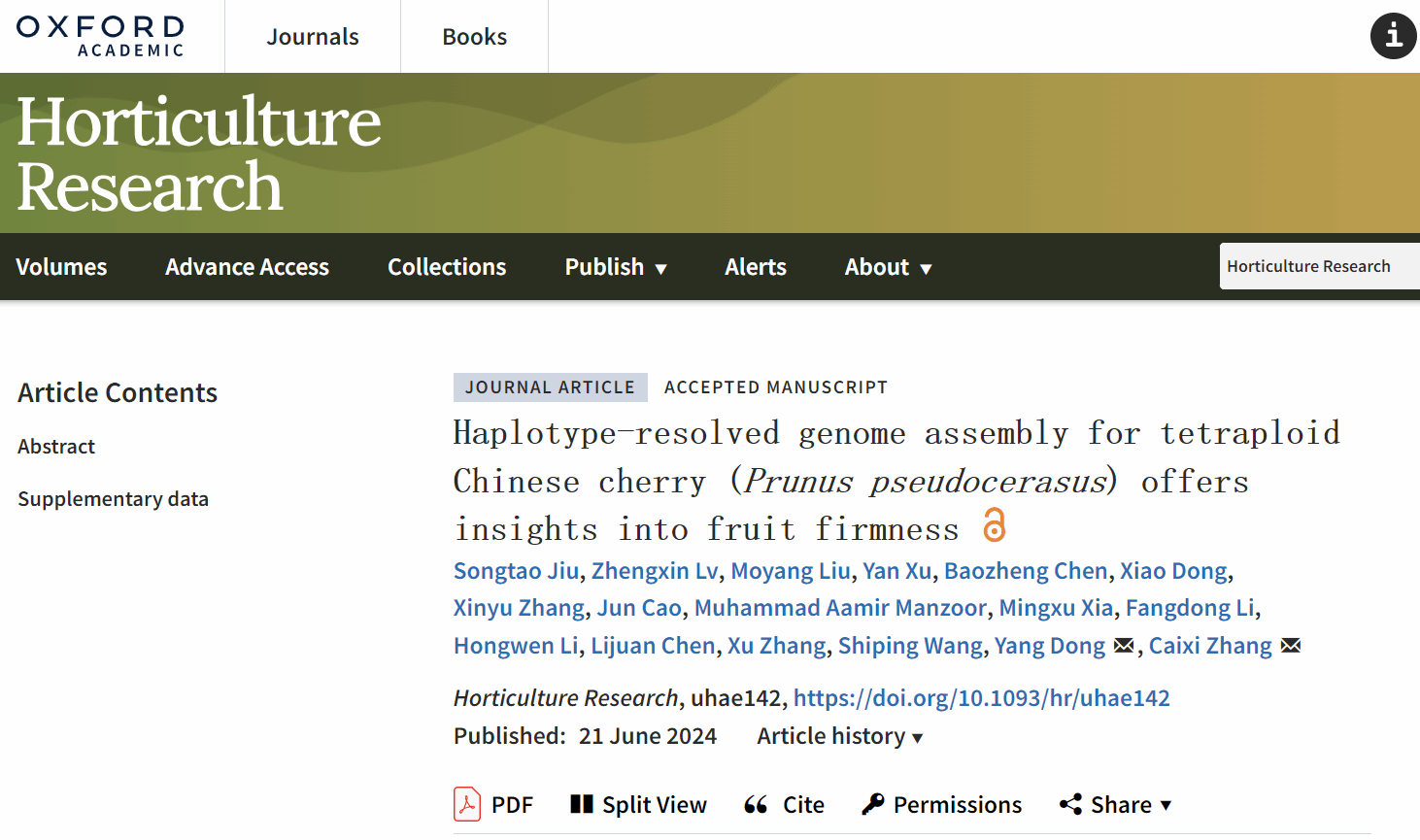 本站消息 近期,Horticulture Research在线发表了上海交通大学张才喜教授团队和米兰在线直播董扬教授团队合作完成的题为Haplotype-resolved genome assembly for tetraploid Chinese cherry (Prunus pseudocerasu...